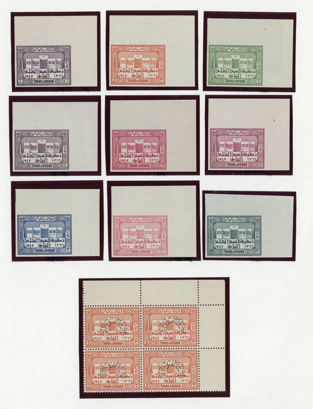 A small selection of stamps with Barbados 1939 Tercentenary of General Assembly set perf. "specimen", Botswana 1966 Independence 2½c. (National Assembly Building) imperf. corner pair, Egypt Parliamentary Conference 10m. imperf. corner block of four and the so-called double print, Ireland covers (2), Trans-Jordan 1947 First National Parliament set imperforate and 3m. corner block of four perf. "specimen"