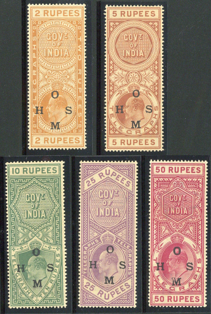 1908 2r. to 50r. set of five, unmounted mint; even gum toning. S.G. OT1-5, £760