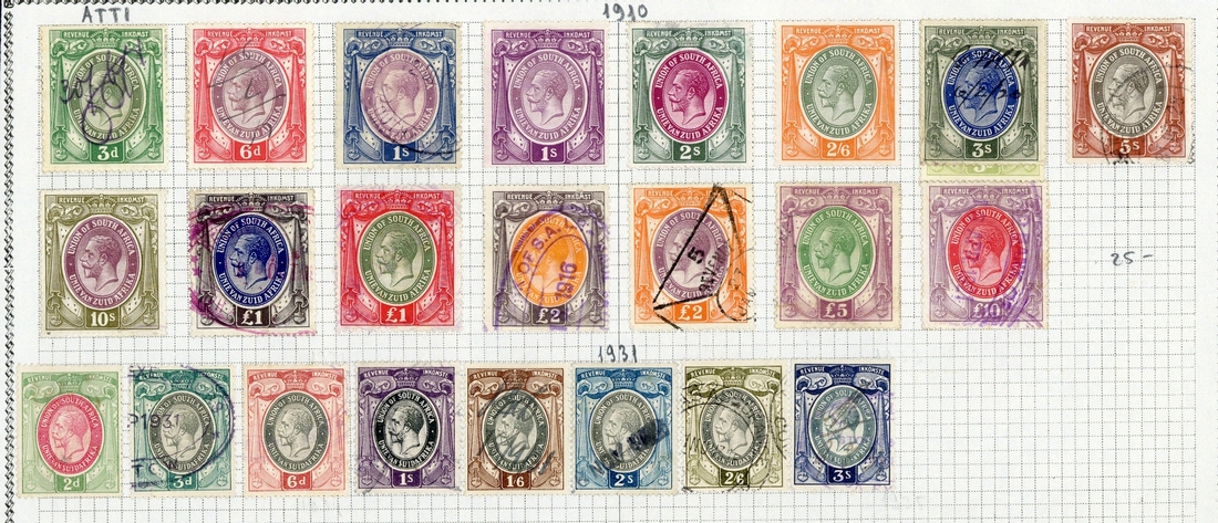 A collection with selections of Assizes (4 on the one piece), Customs (26), Consular (49, one K.G.VI £1 with grossly misplaced overprint), Revenue (140) with values to £10, Railway Stamps, a few Postage values fiscally used and Christmas Seals (19); also South West Africa selection with Cigarette Tax (10), Entertainment Tax (2), Penalty 2/6d. and Revenue (34)