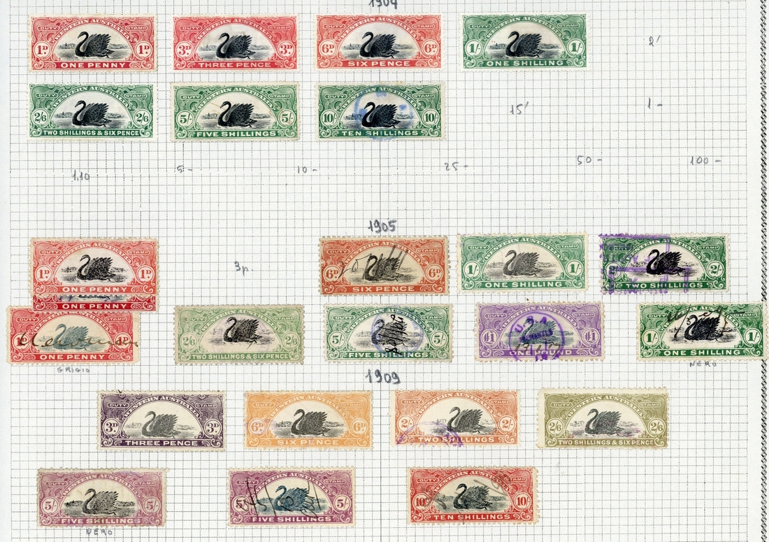 A selection (40) from various sets/printings with bi-coloured selection to 30/- black and brown (2, both unused) and mono-coloured 1d. (4)