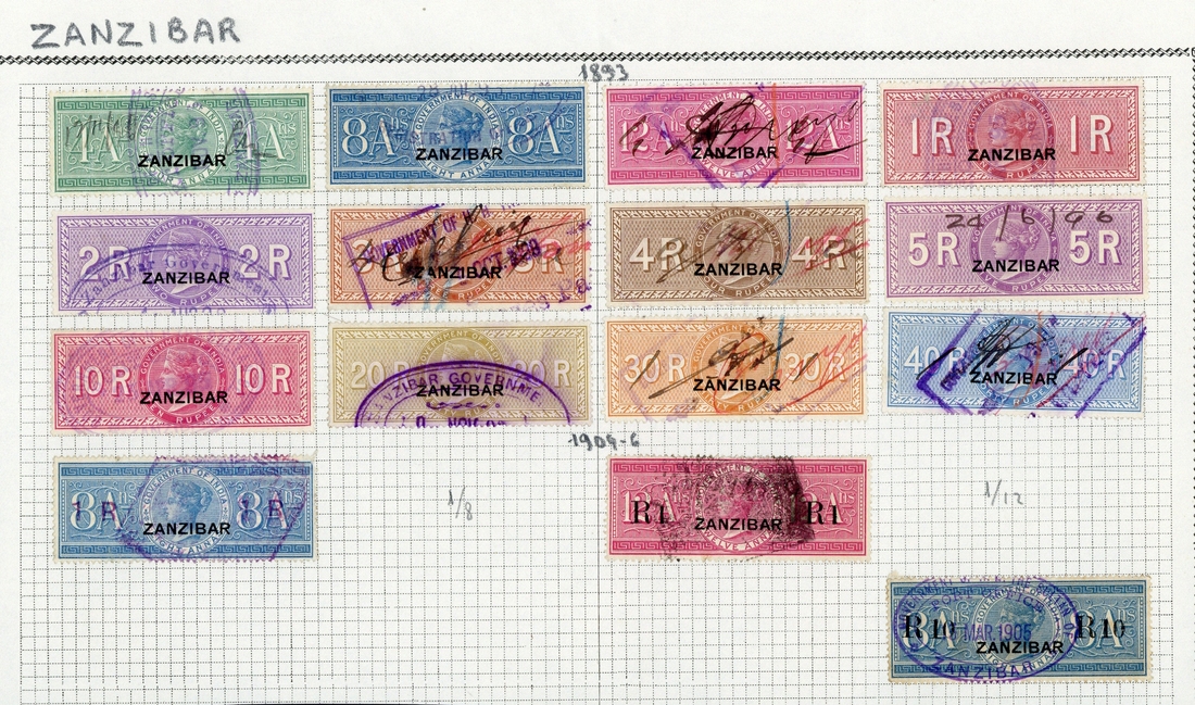 A selection with Revenue 1892 1a. (2, one mint) to 40r., 1904 Provisionals with manuscript values (4) and printed values (3), later Revenue overprints (6) and two Postage stamps used fiscally. A scarce group. Barefoot cat. £550+