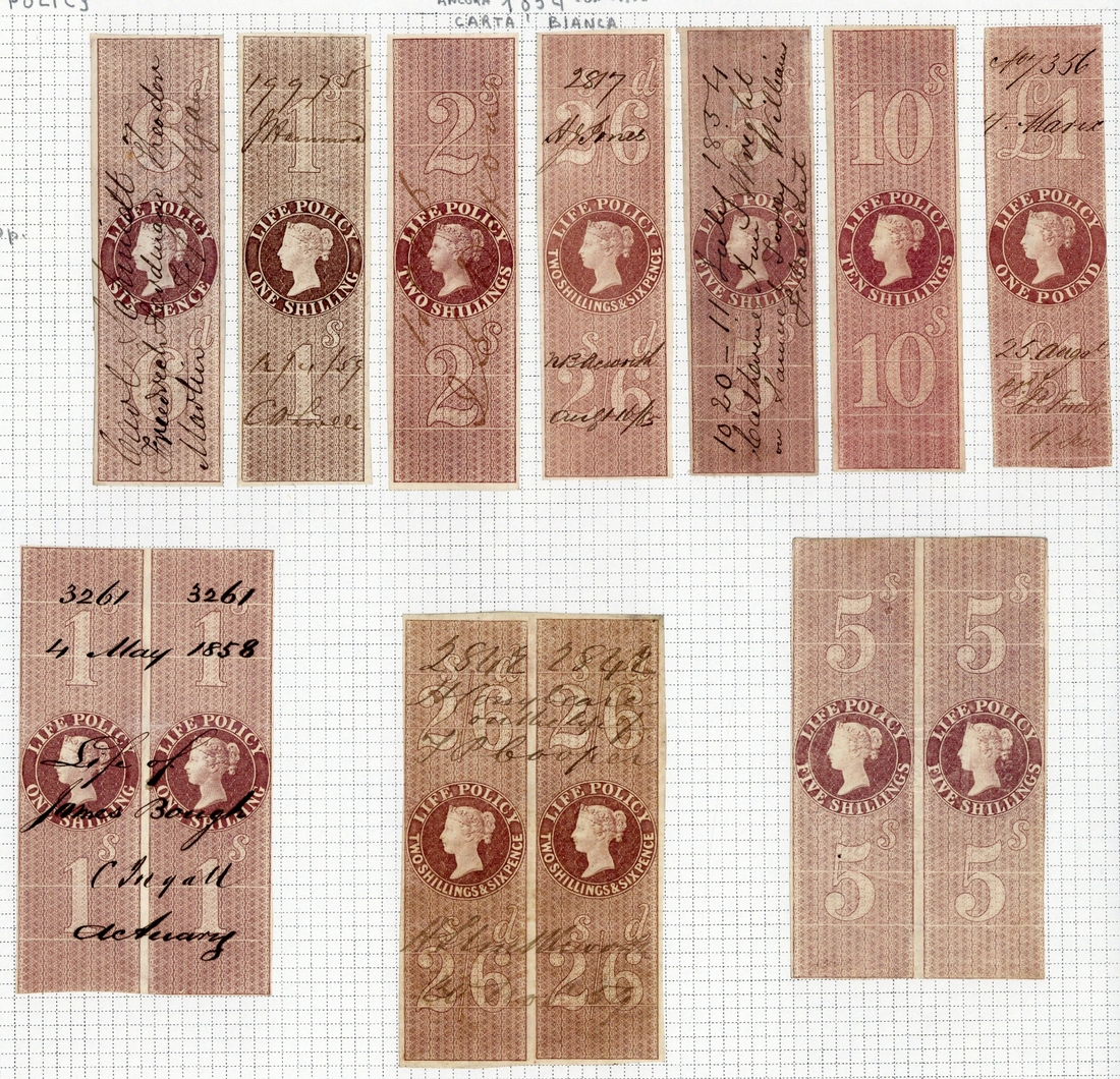 A small collection with 1854 values to £1 with 10/- unused and pairs of 1/-. 2/6d. and 5/-; blued paper values to £1 with pairs of 1/- and 5/-; 1865 values to £1 with 1d. to 1/- unused and pairs of 1d. (unused) and 5/-; 1872 perforated values to £1 with 1d. to 1/- unused. (50)