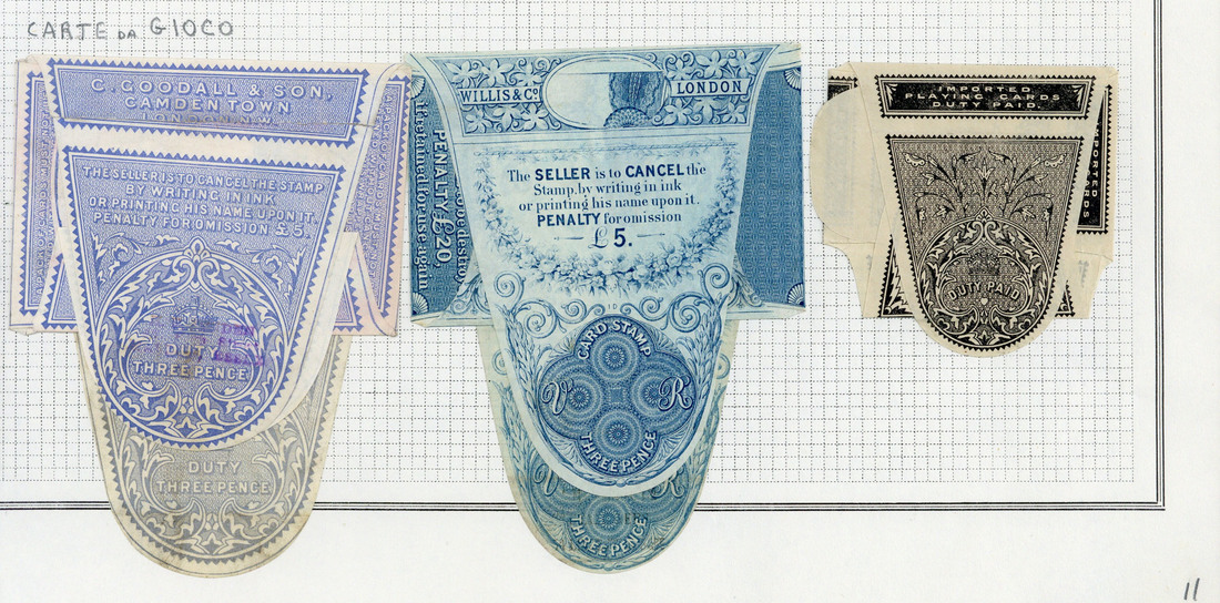 A selection of various issues with unappropriated Q.V. imperf. overprinted "specimen" 3d., 6d., 2/- and 5/-; K.G.V overprinted "cancelled" 2/6d., 6/-, 8/- and 10/-; complete playing card wrappers (3 different); Civil Service includes 1881 values to £5 Specimen and used, 1895 to £5 used; Contract Note with some unused and K.E.VII and K.G.V values to £1; Design 1907 1/-; District Audit with Q.V. values to £5 (4) and K.E.VII values to £5; Receipt Stamps including Receipt 1d. imperf, proof in pale ochre and imperf. in grey-blue pen cancelled; Excise Revenue with values to 3/-; House of Lords with Q.V. 5/- and 10/- plus K.E.VII £1; a good variety of embossed types with unused, De la Rue issues including unused and Specimen; National Health including 1920 6/6d. (thirteen payments); Match Tax ½d. blue; Pedlar's Certificate 6d. overprinted Specimen; a selection of Tea Clearing House; Lancashire Chancery Court with values to 10/-, some receipt stamps and others.