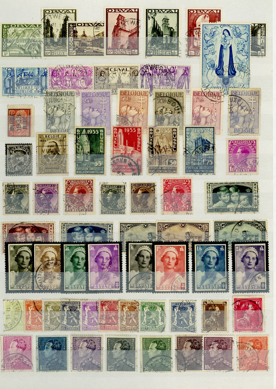 1849-1970 mainly used collection arranged in a stockbook including 1919-20 'Tin Hat' 5f., 10f., 1932 Mercier to 10f. + 40f., 1933 Orval Abbey to 10f. + 40f., 1952 U.P.U. to 40f. + 10f.; also miniature sheets. Condition mixed. (hundreds)