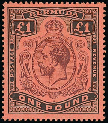 1918-22 £1 purple and black on red variety watermark inverted; fresh colour, fine mint. S.G. 55w, £2,000. Photo