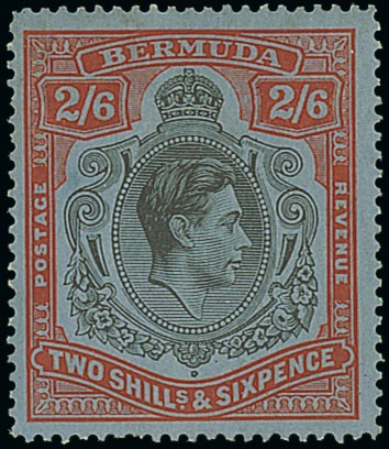 2/6d. black and red on grey-blue, line perf. 14¼, fresh mint; one slightly short perf. at foot, otherwise fine. S.G. 117a, £600