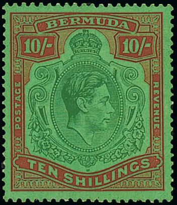 10/- green and deep lake on pale emerald, fine mint. S.G. 119, £450