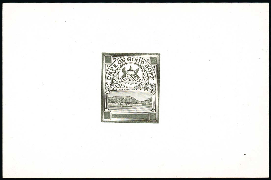 Master die proof with uncleared value tablets and surround, in black on glazed card (92x60mm.), unmarked. Rare. Photo