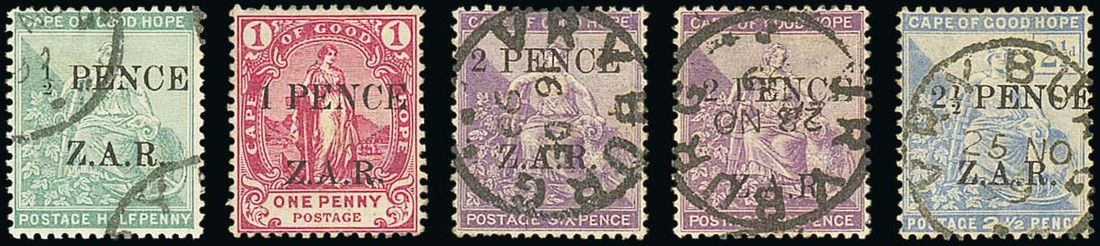 Boer Occupation ½d., 1d., 2d. (2) and 2½d., the 1d. unused, the others used; the ½d. faded, otherwise sound. S.G. 1-4, £1,755. Photo