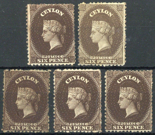 6d. deep brown unused (4, one with part original gum), two with watermark reversed (one regummed), good to fine. S.G. 67/67ax, £920