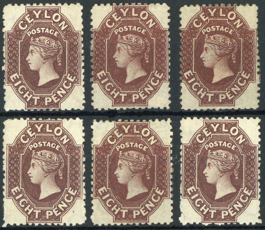 8d. chocolate (6), all unused, one with gum disturbed, generally fine. S.G. 68, £840