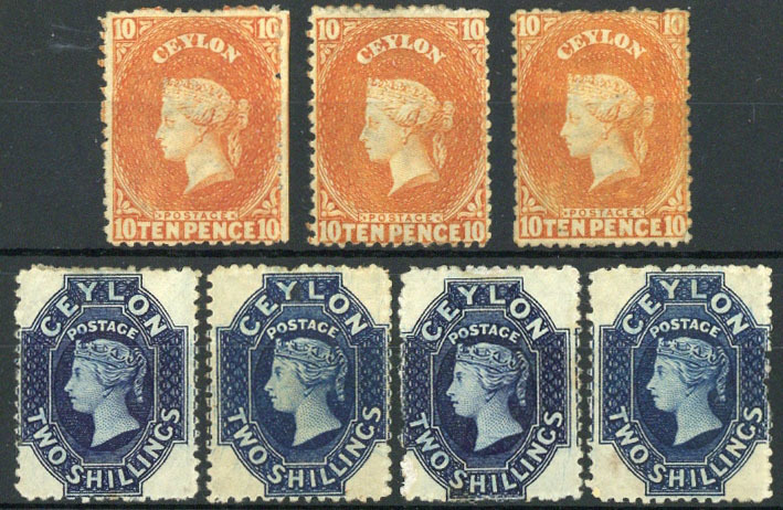 10d. red-orange (3) and 2/- deep blue (4, two with watermark reversed), all unused, some with gum, generally good to fine. Cat. £990