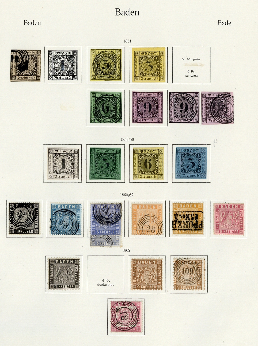 A comprehensive mint and used collection arranged on printed album leaves comprising Baden, Bavaria, Bergedorf, Brunswick, Hamburg, Hanover, Heligoland, Lübeck, Mecklenburg-Schwerin, North German Federation, Oldenburg, Prussia, Saxony, Schleswig-Holstein, Thurn and Taxis and Württemburg; also Schleswig mint. Mainly good to fine. (hundreds)