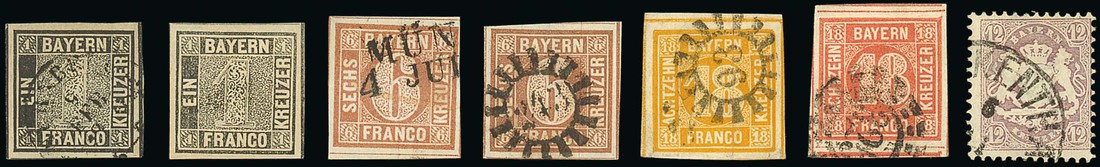 1849-1920 mint and used collection housed in a green album, hundreds, including 1849 1k. black Plate 1a with part original gum (Brettl (1988) Certificate), Plate 2 used (Brettl (1995) Certificate) and another (signed Richter), 1849-62 6k. (4), 1850-58 12k., 18k. (3), 1862-6 18k. (3), 1867-69 imperf. 7k. Prussian blue (signed Brettl), 12k.(2), 18k., 1870 watermark 14mm. 9k., 10k., 12k. (Brettl (1993) Certificate), 18k. (2), watermark 17mm. 18k., 1874 imperf. 1m., perf. 1m. (2), 1875 7k., 10k. and 18k. (all used, signed Brettl), 1876-80 with values to 2m., 1890 unissued 2m. perf. block of four, imperf. single, 1900-06 imperf. 3m. and 5m. (each with photocopy of Helbig (2008) Certificates), 1911-13 Luitpold Type II 1m. to 20m. used (3m. to 20m. signed Helbig), 1912 25pf. Air Mail label mint and on cover, 1919-20 perf. set used, 1919 War Wounded set with inverted overprints, 1920 Litho 2½m. used (signed Peschl), Officials, Postage Dues 1862 3k. (2), etc., chiefly fine. A valuable and useful lot. Photo