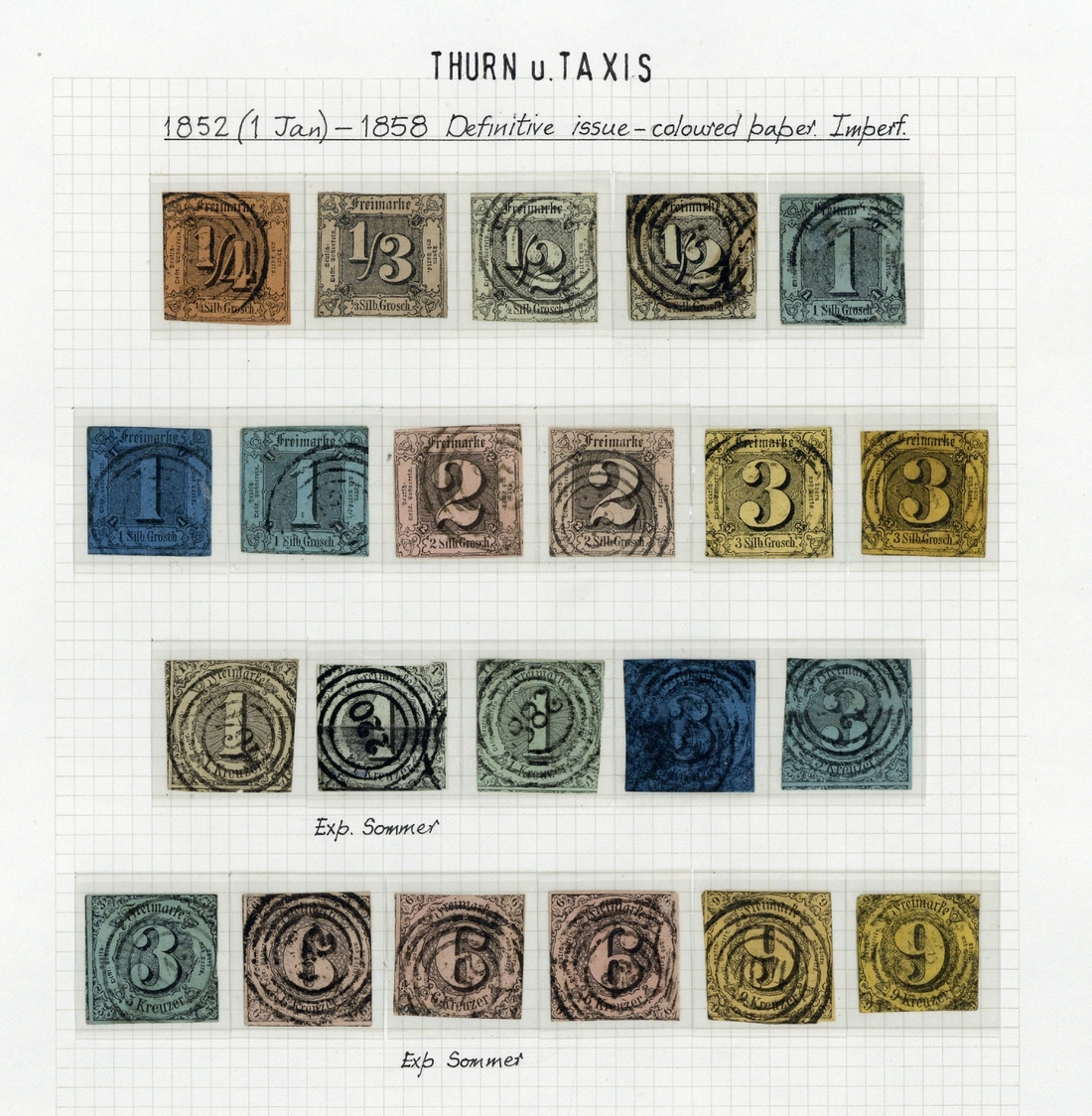 1852-66 mint and used collection (109) on pages, including Northern District 1852-58 imperf. ¼sgr. to 3sgr., 1859-61 ¼g. to 5sgr. (signed Helbig) and 10sgr. (2 used), 1862-64 ¼sgr. to 3sgr., 1865 rouletted ¼sgr. to 3sgr. (½sgr. on piece with blue cancellation (Sem (1997) Certificate), 1866 rouletted in colour 2g. used (Helbig (1992) Certificate), 3sgr. used (photocopy of Sommer (1985) Certificate), 3sgr. on cover (Sem (1997) Certificate), Southern District 1852 1k. to 9k., 1859-60 15k. (2), 30k. used, reprints, etc., chiefly good to fine. A useful lot