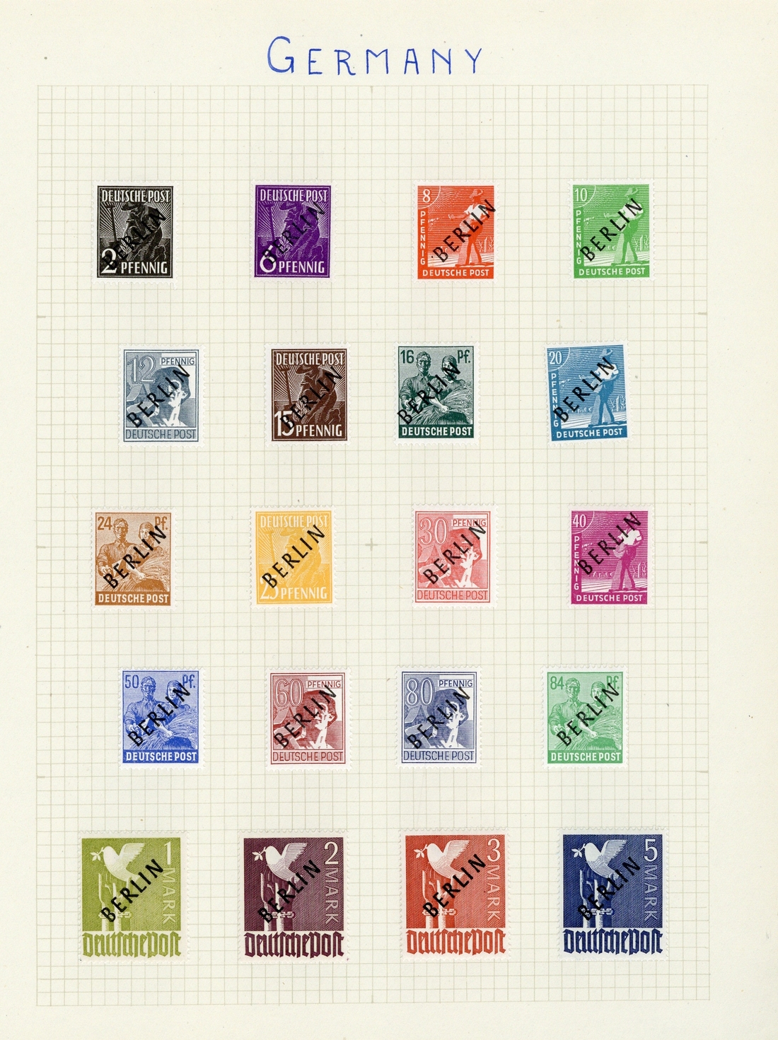 1872-1952 mint and used collection housed in a blue album, including 1902 5m., 1926-31 Air 3m., 1929 Charity 50pf. + 40pf., 1933 Wagner, Allied Occupations, Berlin 1948 black overprint set, 1949 U.P.U., 1949 Goethe, 1949 Relief fund, 1950 E.R.P., 1951 Lortzing, 1951 Stamp Day, West Germany 1949 Parliament, 1951-52 Posthorn 40pf., 60pf., 1951 Rontgen, East Germany, Saar, etc., mixed condition with some stuck down
