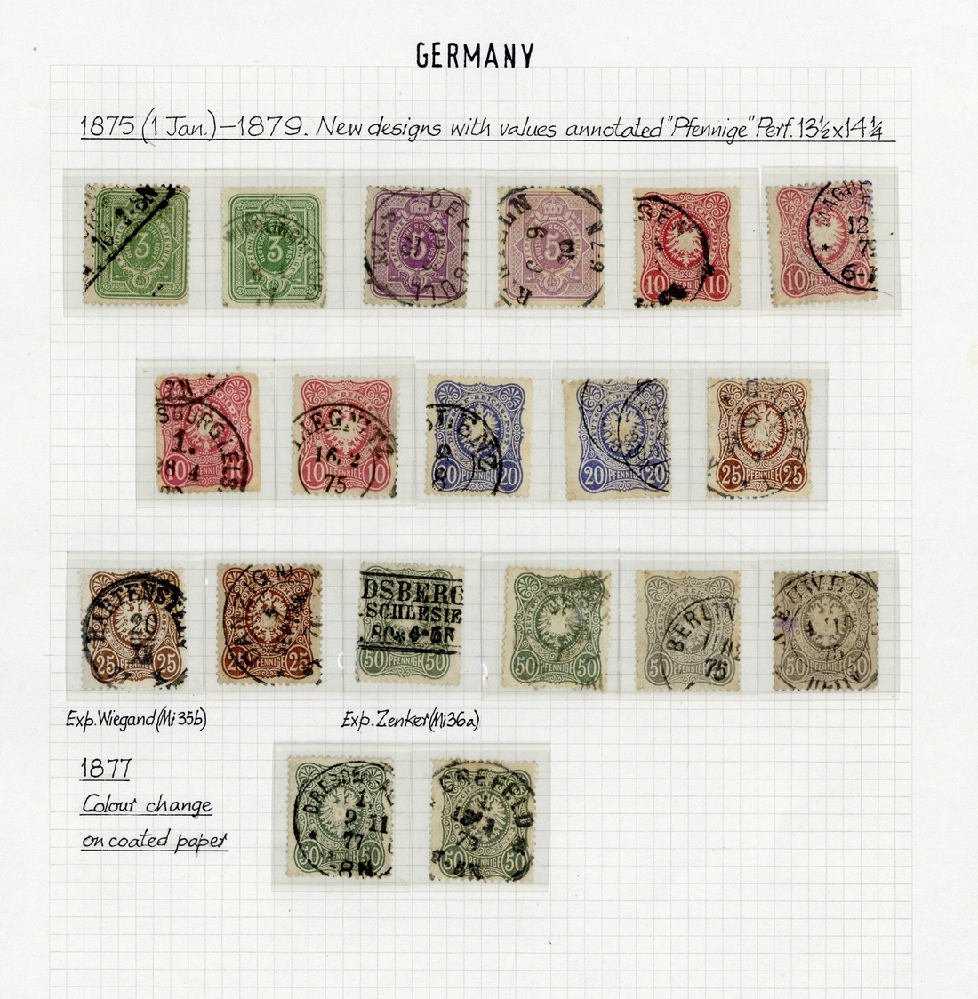 1875-87 chiefly used collection (83) on pages, including 1875-79 to 50pf. grey, 50pf. grey-green, 1875-99 2m. dull violet (8 pen-cancelled), 1880-87 5pf. to 50pf. overprinted "Specimen", etc., mostly fine