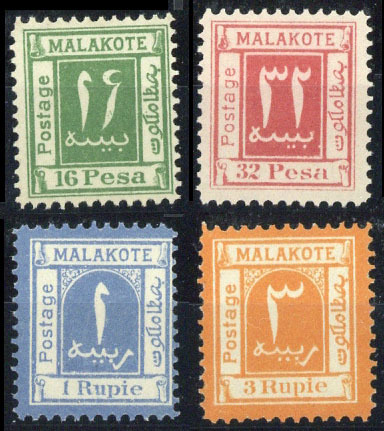 Malakote 1890 Denhardt Brothers 16p. 32p., 1r. and 3r. labels, fresh unused