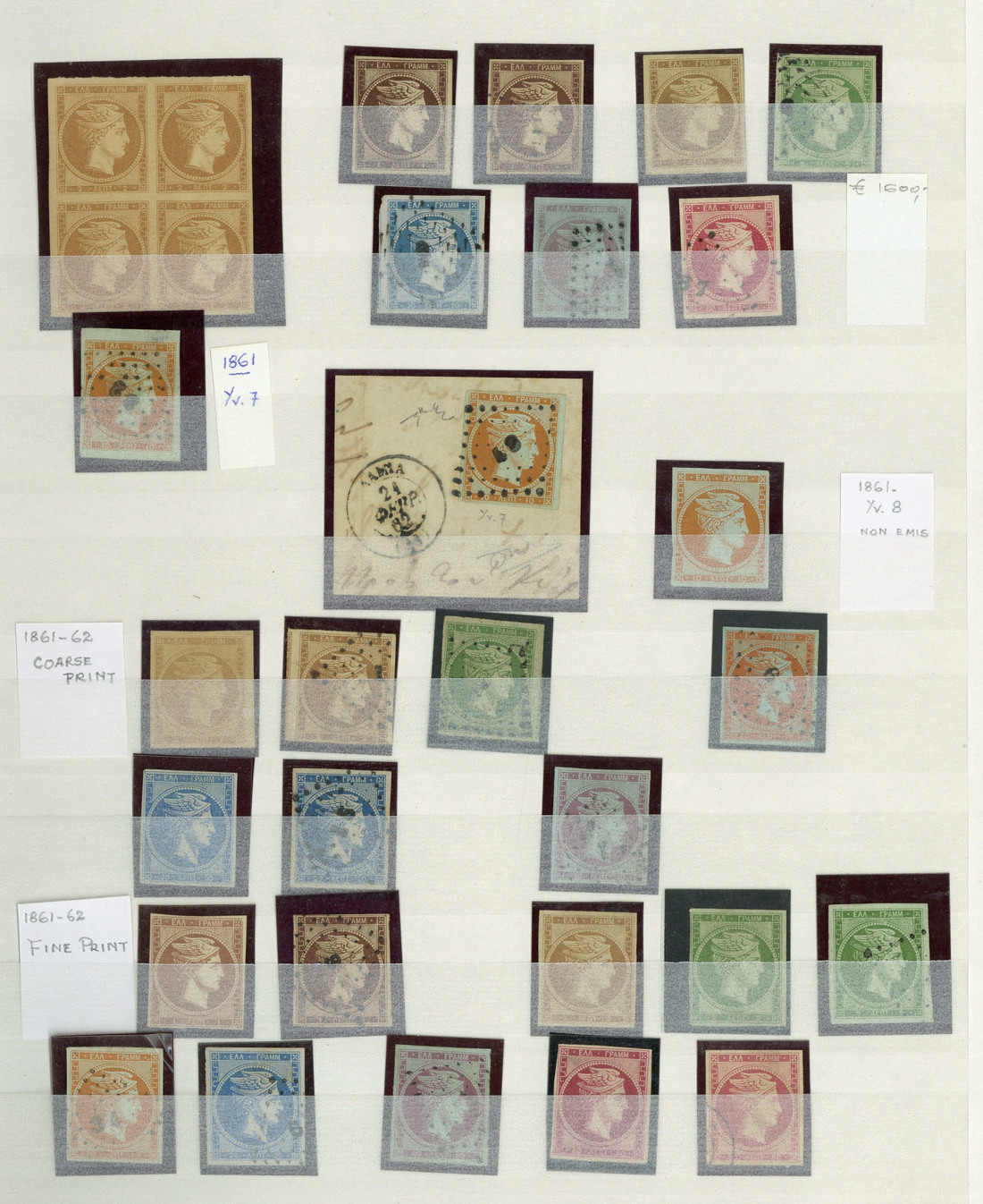 1861-1960 (c.) mint and used collection arranged in two stockbooks, including a good range of Large Hermes Heads with 1861 Paris prints, 1861-62 Athens coarse and fine prints and later with a good range of shades and a few mint multiples, 1896 Olympics to 5d. mint, 1900-07 Olympic Games surcharges to 2d. on 10d. mint, 1906 Second Olympic Games to 5d. mint, 1933 Graf Zeppelin to 120d. mint, (10 Oct.) Air to 50d. (2, one used on piece); also Postage Dues and few Crete. Condition mixed. (hundreds)