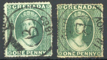 1861-62 1d. bluish green cancelled with 1862 "B" datestamp, fine; also 1d. green (thin) similarly cancelled with November 1862 datestamp. S.G. 1, 2, £350