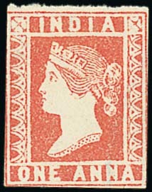 1a. red Die III with margin at top and largely at foot, touched on the vertical sides, fresh unused; thin spots at upper left. A rare stamp. B.P.A. Certificate (2013). S.G. 15, £3,000. Photo