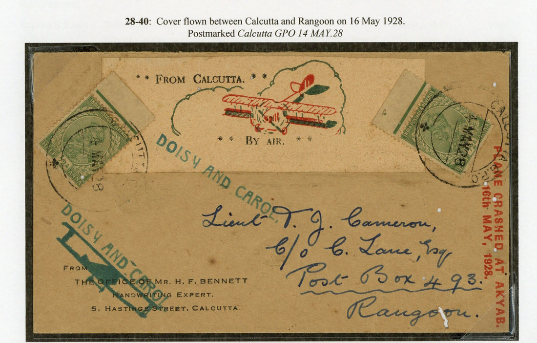 1928 (May) Doisy and Carol from Calcutta to Rangoon, Amsterdam-Batavia Experimental flights (Sept.) Capt. Koppen from Calcutta to Rangoon, (Oct.) Flight Lt. Prillwitz from Calcutta to Rangoon and (Oct.) Capt. Schott from Calcutta to Rangoon; fine