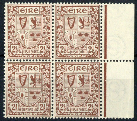 2½d. red-brown marginal block of four from the right of the sheet, variety watermark inverted, unmounted mint; ight diagonal bend affects three, otherwise fresh and fine S.G. 75w, £240+
