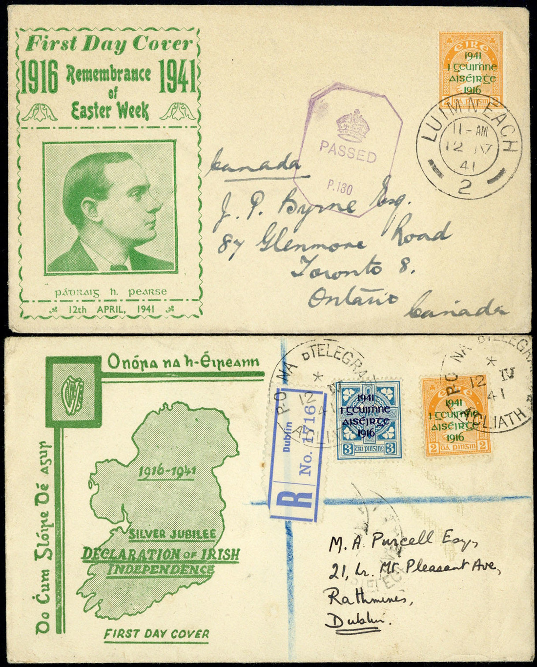 1923-71 interesting selection of over 350 covers or cards, almost all bearing the "Map" design, contained in a carton, many addressed oversees and including 1967 parcel front to 9th. Irish Infantry Group HQs U.N.F.I.C.Y.P., Nicosia - Cyprus bearing 2d. and 1/- pairs and St. Patrick 10/-, others with registered, express, censored, "Krag" temporary cancellations, Postage Dues, Late Fee, etc., mixed condition