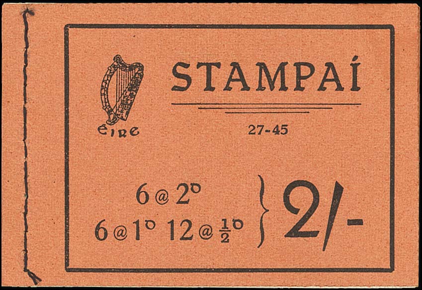 1945 2/- (edition 27-45), all panes watermark inverted, some trimmed perfs., the second ½d. pane with small faults; fine appearance. S.G. SB5, £2,000. Photo
