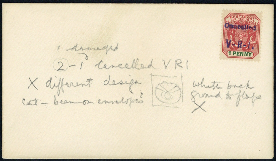 1d. rose-red and green (4) on unaddressed envelopes, all with pencil notations on the face with one referring to the block of fourteen included in the Harry Birkhead auction