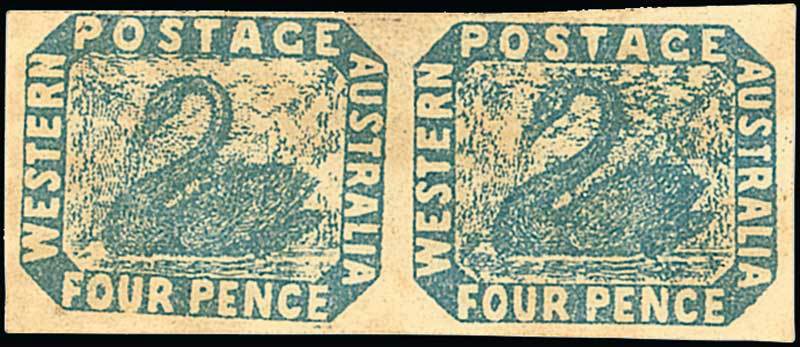 [125] pale blue horizontal pair, [124-125], showing variety "t" of "postage" shaved off to a point at foot, clear to large margins, without gum, minor toning otherwise fine. B.P.A. Certificate (2007). S.G. 3/3d, £2625. Photo