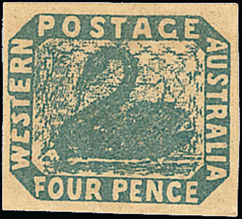[37] pale blue showing variety "west" in squeezed down letters and "f" of "four" with pointed foot, good margins all round, without gum, a little toned. B.P.A. Certificate (2007). S.G. 3j, £2750. Photo