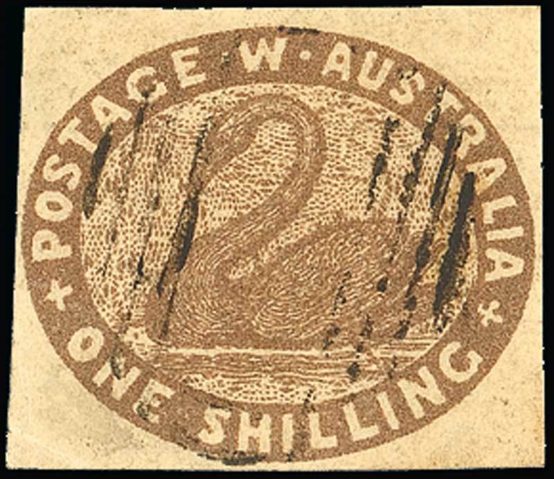 There were four printings of the 1/- value, July 1854, January 1855, October 1855 and November-December 1855. It is considered that the salmon and red-brown shades from the first printing, the grey-brown shades from the second printing, the pale brown shades from the last two printings.