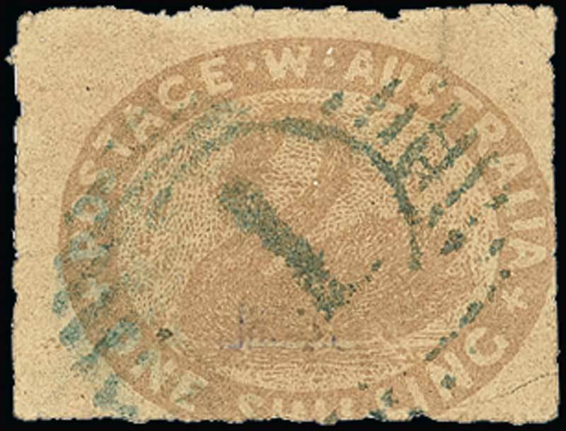 Pale brown with roulettes or traces thereof on all sides, centrally cancelled "1" in blue, slightly soiled otherwise fine. S.G. 6a, £900. Photo