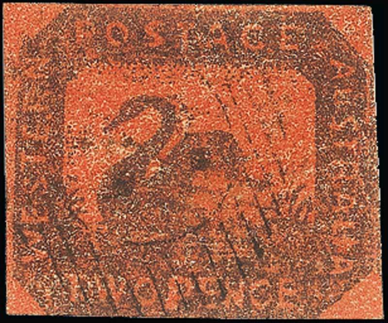 An examples with clear to large margins on three sides, just touching along foot, lightly cancelled, lovely colour, fine. S.G. 16, £800. Photo