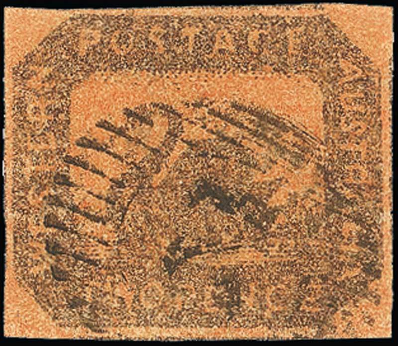 Imperforate Used - Brown-Black on Deep Red