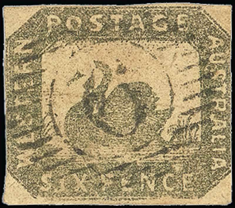 An example with good margins at foot, close at top and just into at sides, showing variety no head to swan, beak and neck present [35], centrally cancelled "6" (Albany), two very tiny thin spots otherwise fine. S.G. 18, £650. Photo