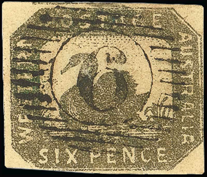 An example with mainly good to large margins (outer frameline touched in two places), centrally cancelled "6" (Albany), two central thins not affecting appearance. S.G. 18, £650. Photo