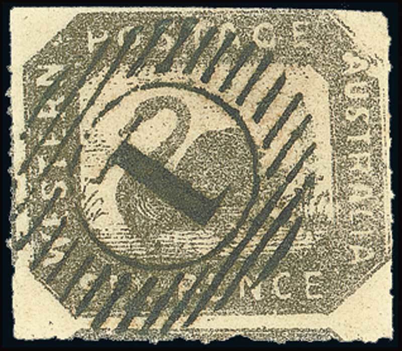 Black-bronze with roulettes on three sides, centrally cancelled "1", fine. R.P.S. Certificate (1944). S.G. 22, £950. Photo