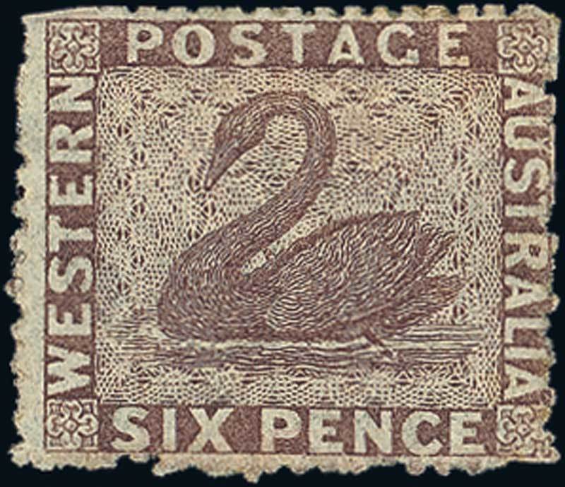 6d. purple-brown, unused without gum, a few perfs cut off around top left corner otherwise fine. S.G. 36, £1100. Photo