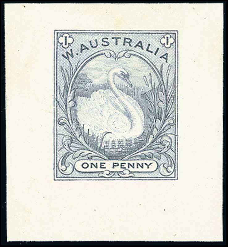 1d. essay depicting a white Mute Swan, printed in grey-blue on card (32x35mm.), fine. Photo