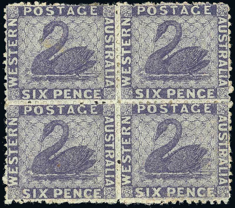 6d. dull violet block of four, unused with large part original gum, fine. S.G. 51a, £1400. Photo