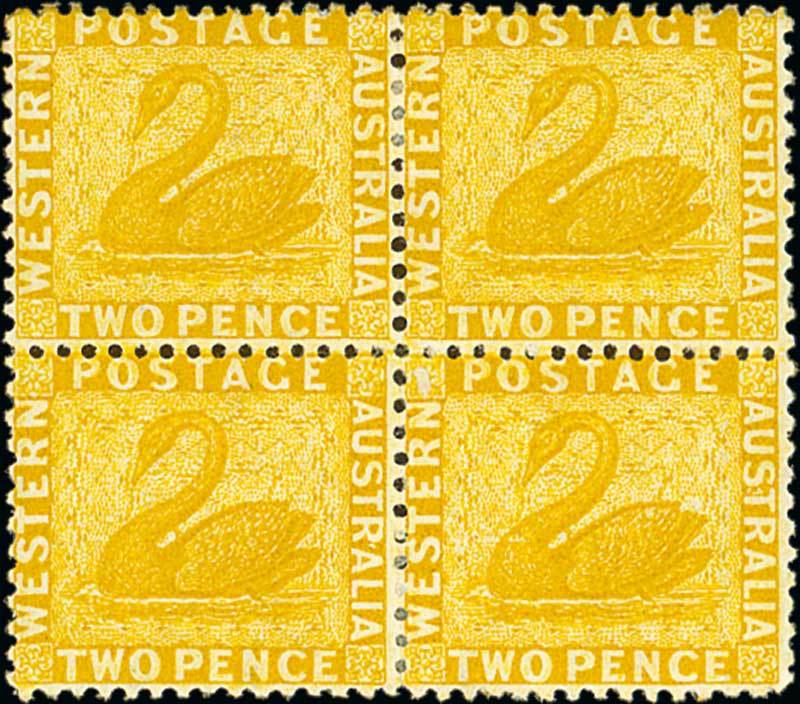2d. chrome-yellow block of four, unused with part to large part original gum, fine. S.G. 54, £360. Photo