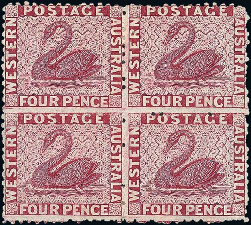 4d. carmine block of four, unused with large part original gum, fine. S.G. 56, £520. Photo