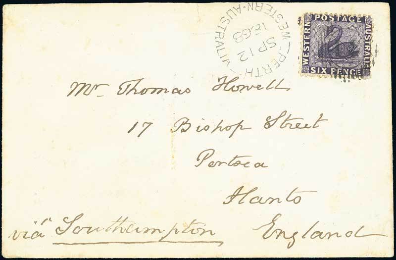 1868 (12 Sept.) envelope to Portsea, bearing 6d. violet clearly tied by Perth duplex and showing Portsmouth arrival c.d.s. (9.11) on reverse. Photo