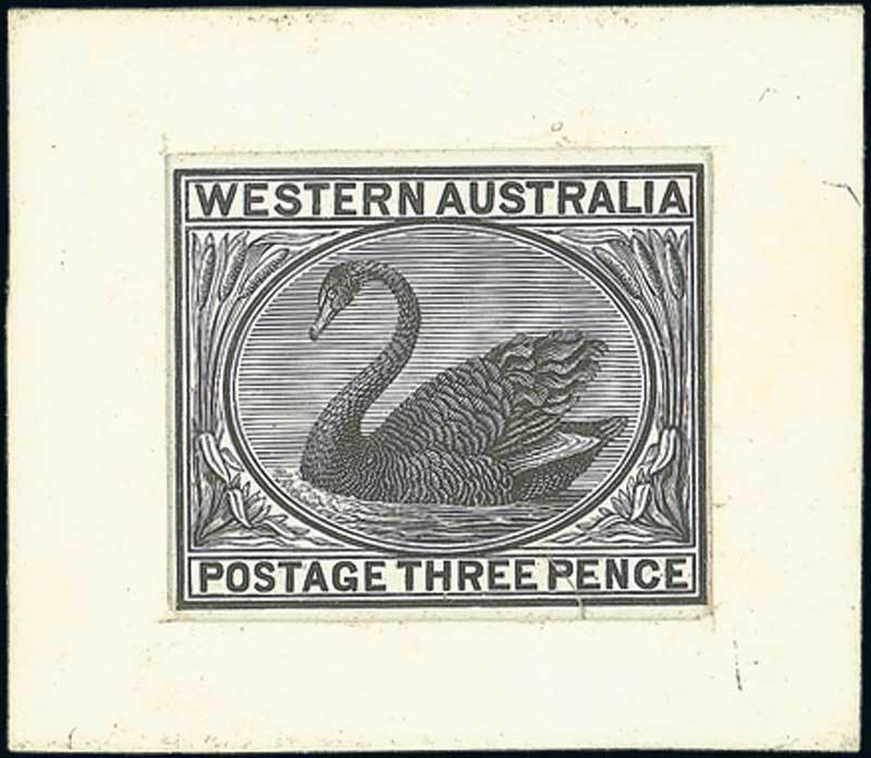 3d. complete proof in black on card and inset on mica-covered card (36x32mm.), fine. Photo