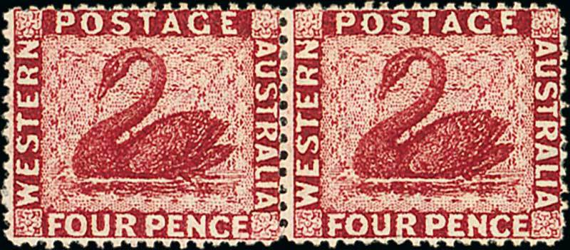 4d. carmine horizontal pair with watermark Crown to right of CC and reversed, unused with large part original gum, fine. Scarce. S.G. 74y, unpriced. Photo