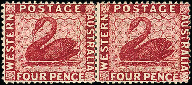 4d. carmine horizontal pair with watermark Crown to right of CC and reversed, unused with large part original gum, fine. Scarce. S.G. 74y, unpriced. Photo