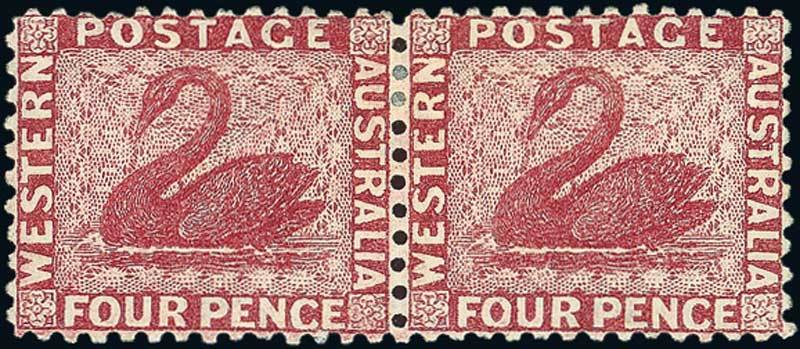 4d. carmine horizontal pair, unused with large part original gum, fine. S.G. 84, £550. Photo