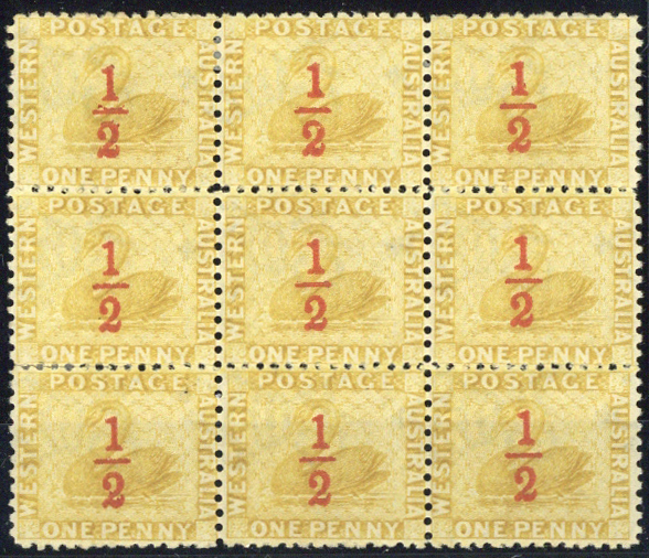 Perf. 12 block of nine, unused with large part original gum, fine. A scarce multiple. S.G. 90, £144